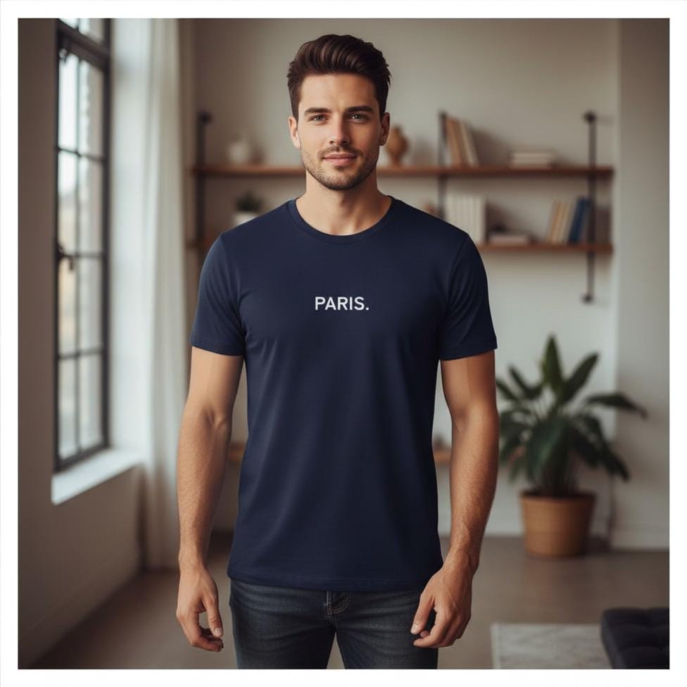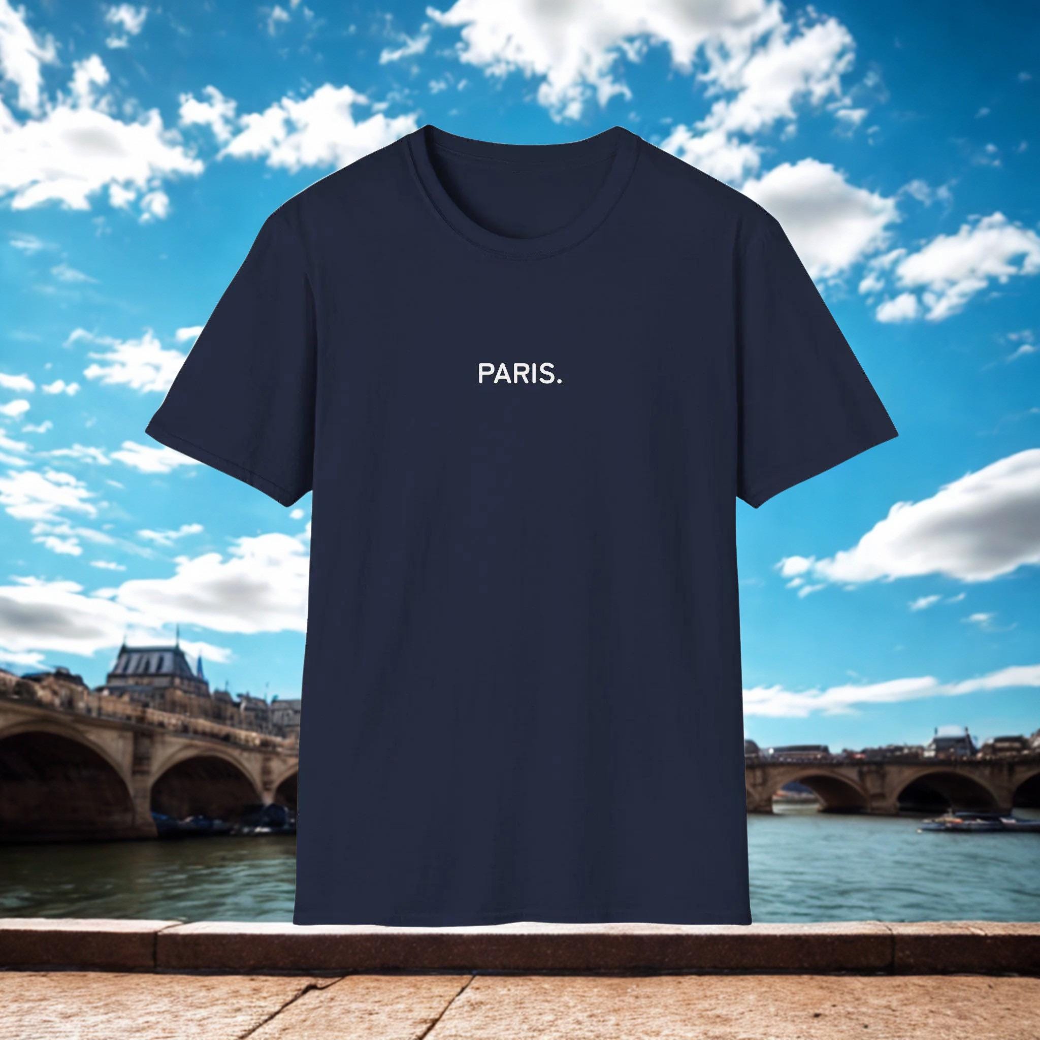 Soft, simple, and quietly confident — this lightweight tee whispers 'Paris.' in a typewriter-style font across the chest. It sits close to the skin without clinging, draping in a clean crew neckline that layers easily under a jacket or pairs with denim for a stroll down cobblestone streets in your mind. The minimalist design fits a traveler’s memory book or a city-lover’s everyday rotation: calm, subtle, and a little nostalgic. Wear it when you want to recall morning cafés, slow museum afternoons, or the way light falls on limestone buildings. Breathable cotton and a tear-away label keep the shirt comfortable during long walks or long conversations.